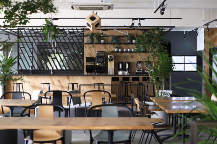 其次,以餐饮服务柜台为重点,按“放松”、“集中”、“共享”等主题划分分区。利用良好的自然光,并结合大量的生物亲性设计,材料的安排方式,创造一种被自然包围的感觉。