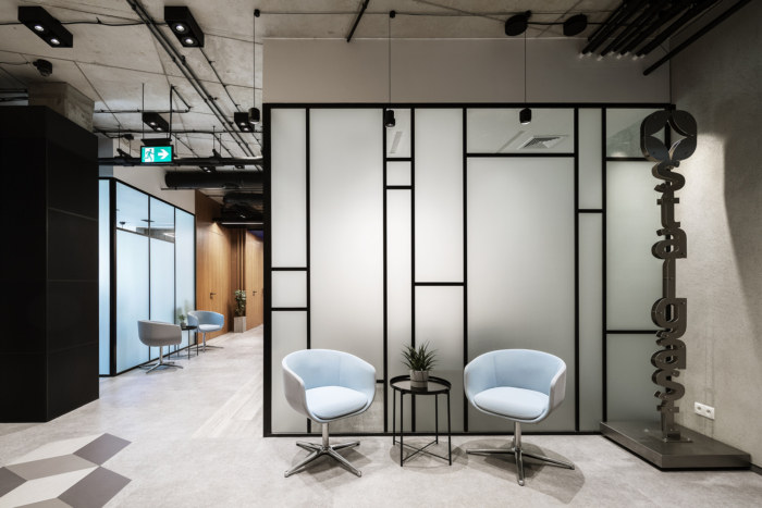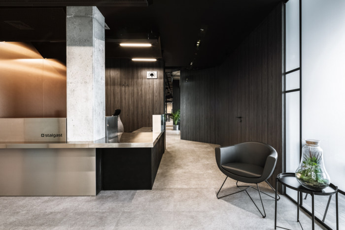 该企业是生产餐厅家具和不锈钢配件的公司。正因为如此,室内装饰了许多钢元素,如前台、墙板或吊顶。此外,蓝色元素已纳入反映公司标志的配色方案。创建了一个具有舒适座位区的会议区。