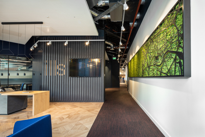 合肥办公室装修在单色背景下,中性配色方案是通过强调颜色和微妙的纹理材料调色板开发出来的。接待处的板条木墙提供了微妙的品牌,而坐在苔藓板上的该区域的激光切割地图则提供了当地的故事。下面欣赏旭彩网最新办公室装修设计效果图!