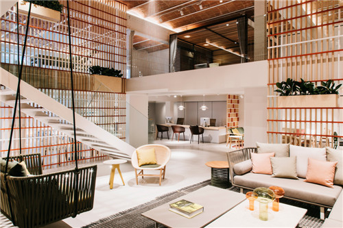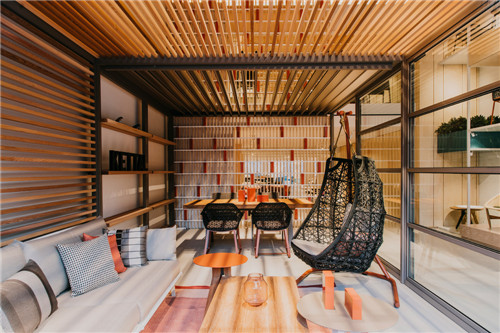 设计师利用空间的双重高度,为了统一这两个层次,为了识别展示厅的不同区域而插入的附加建筑元素是3个后续框,每个框都有不同的格式不同的功能:显示,展览面,庭院包围。各种规模和模式的矩形图案分布在整个展示厅,显示了独一无二的触感,同时增加了色彩,质感和娱乐元素,创造了与品牌身份相匹配的空间。