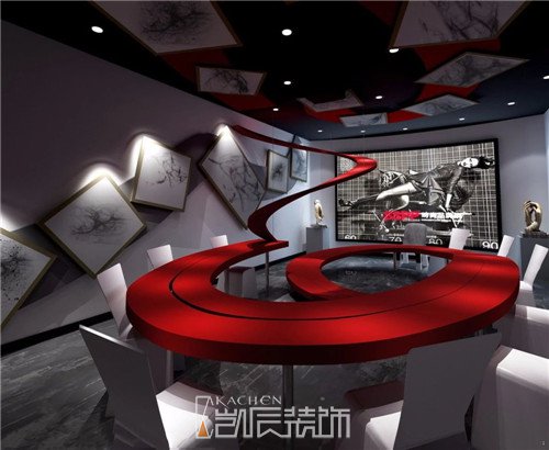 旭彩网 抽象派的会议室,设计得超乎想象力,耀眼的红色桌子,就像丝滑的绸缎一般盘旋在空中。富有艺术感的素描画,不规则地展示在墙上,与会议桌相呼应,整体极具吸引力。不知哪种会议室更适合你呢?让你从此不再惧怕职场中的开会时刻~