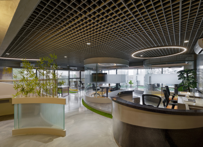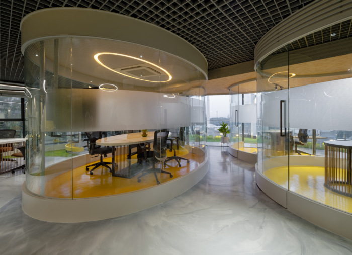 每个独立的工作空间都被覆盖在不同的托盘上,不仅定义了给定空间功能的变化,也颂扬了人与自然、与设计的轻松对话。一个简单的S形曲线从办公室的入口开始,艺术地引导用户从室内走向室外。会议室像灯笼一样漂浮在办公室的中央,照亮了周围的空间。了解客户的需求,空间的设计不仅要符合设计的物理属性,还要融入自然元素,提升人类的体验。所有的室内空间都被自然光所提升,自然光沐浴在设计的曲线脊柱中。