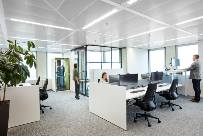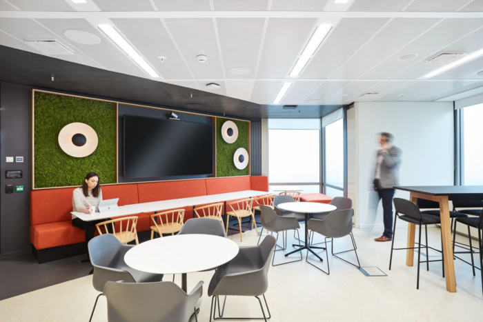 办公室翻新、改造,一般都是想要创造一个更开放、更轻的空间,办公室现在的整体设计是重分隔的。企业希望我们能创建一个更舒适的开放计划环境,允许在可识别区域内进行协作,整个房间的照明也得到了更新,更加节能,提供更舒适的工作光线。会议室大小宽敞,配有隔音板,并可在摄像头可见的表面写字,支持与其他分公司的办公室合作。此外,我们还介绍了各种家具选择,以及更多的触觉织物和植被在可能的地方。