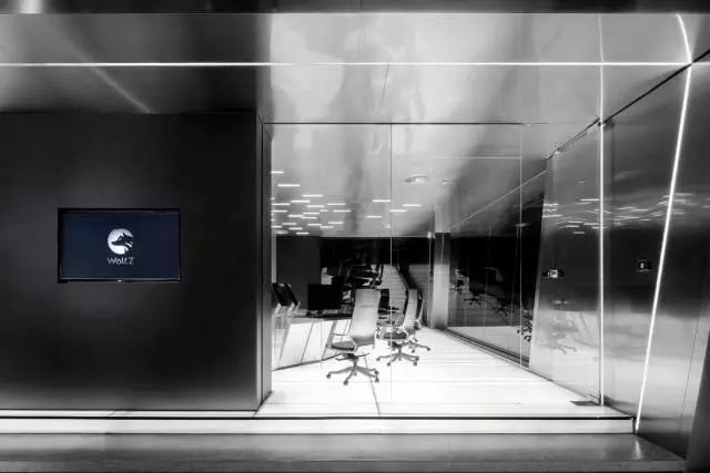 整个魔杰电竞的装修风格采用了不带感情色彩的黑白与大面积的不锈钢结合,顶端的日光灯发出线性光,穿过玻璃墙映在天花板上,给人带来十足的科技体验感。