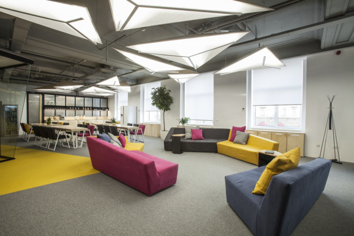 装饰公司为位于保加利亚索非亚的客户服务平台公司实现了办公室设计。客户的目标是在索非亚建立一个新的技术机构,为他们在旧金山快速发展的初创企业服务。艺术上的建议是把办公室内部想象成一个“城市”,在一个紧张的工作日里为各种活动提供便利。