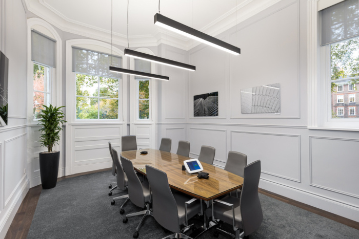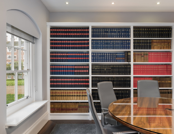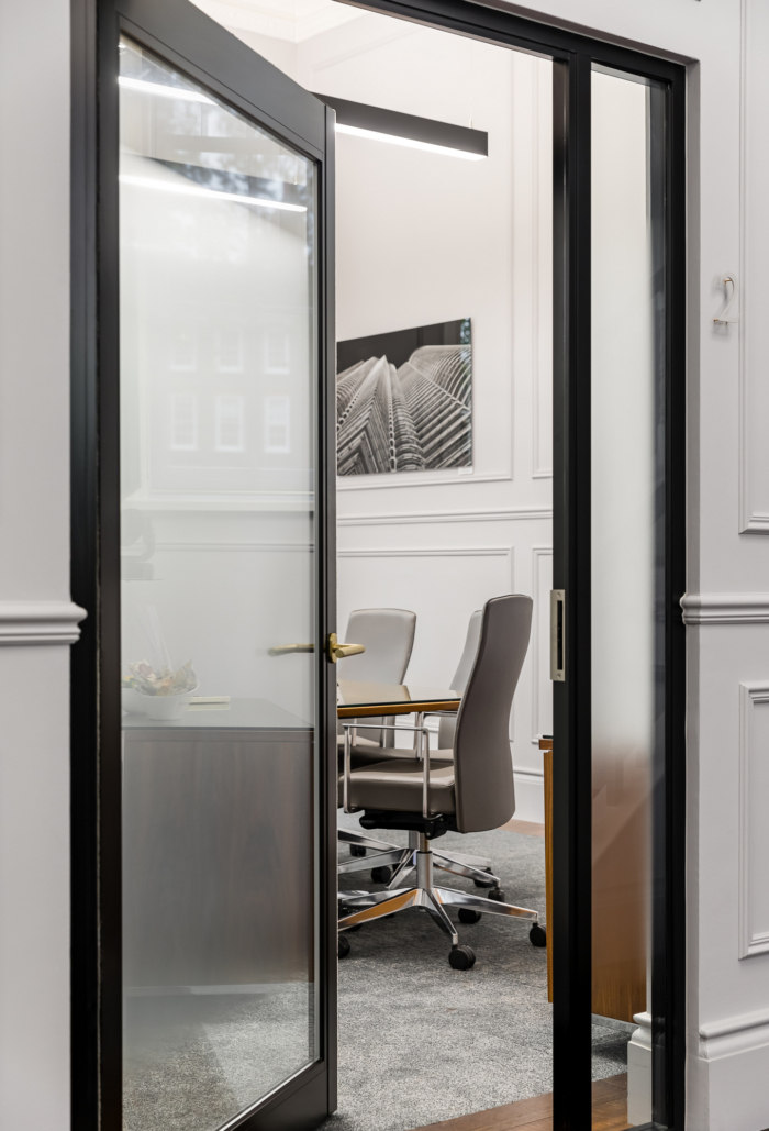 最近新完成的法律办公室设计,一个多专业的法律公司。多专业律师事务所希望他们的新办公空间装修能优先考虑员工和客户的体验。设计美学需要现代和当代美学融合,同时唤起传统,传达隐私、安全和保密的信息。装饰公司和律师事务所领导沟通,讨论出几种设计方案,一种设计方案调色板一种较暖,一种较冷,事务所领导选择了更现代的方案,与他们的品牌一致。为了与建筑的历史风格融合,我们在整个空间添加了墙壁镶板,并使用了中性的色调。最后一个空间改变了客户和员工的体验,办公室装修设计时在入口门上的品牌欢迎客户进入接待区,律师所个人风采展示的艺术作品为空间增加了一种个人风格。新增加了一个功能性空间,休息室为员工提供了一个放松或娱乐客户的空间。最后的画龙点睛之笔是个伪装成书架的秘密门口。
